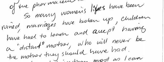 A beadványok többsége a pusztító mentálhigiénés kihívásokról szól, amelyekkel a nőknek újonnan felfedezett fájdalmakról és a folyamatban lévő szexuális, húgyúti és bélfunkciókról kellett tárgyalniuk; az autópályadíj, amelyet ez fedezett pénzügyi helyzetükre; az elfelejtett ünnepek és kapcsolatok; képtelenség játszani a gyerekeikkel; a szexuális élet teljes elvesztése, és részben válás.